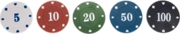 Šareni žetoni s vrijednostima 5–100 i ugodnom masom od cca 4 g odlično se miješaju i daju autentičan doživljaj igre.