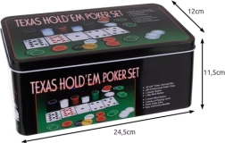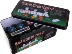 Uživajte u kućnim turnirima kao u kasinu. Ovaj univerzalni set idealan je za poker TEXAS HOLD’EM i druge kartaške igre. Čvrsta limena kutija štiti sadržaj i olakšava skladištenje i transport, dok organizer/stalak drži žetone i karte na svom mjestu.