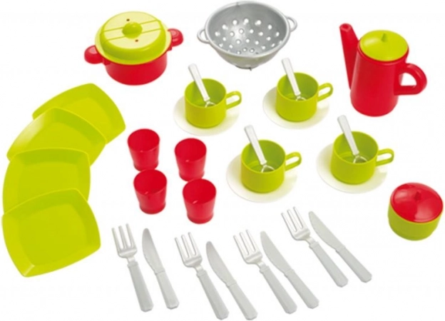 Praktičan i zabavan set čajnog servisa i posuđa za djecu, idealan za igru i razvoj vještina. Set sadrži kompletnu opremu koja je djetetu potrebna za vlastiti mali domjenak.
