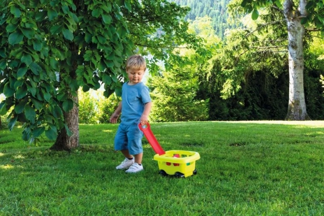 Zabavna i praktična dječja vrtna kolica s kantom i priborom za igru na pijesku i u vrtu. Zahvaljujući laganoj plastičnoj izvedbi i praktičnoj ručki za vuču lako se upravlja. Set sadrži kanticu, sito, zalijevaču, lopaticu, grabljice i kalup – sve za kreativnu zabavu na otvorenom. Dimenzije 31 × 19 × 17,5 cm.
