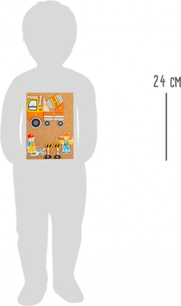 Ovaj kreativni set za zabijanje na ploči od pluta odličan je izbor za male graditelje i ljubitelje prometa. Djeca mogu od drvenih oblika stvoriti radnike, miješalicu, dizalicu ili automobile te ih pomoću pribadača sigurno pričvrstiti na ploču od pluta. Praktična kutija za pohranu osigurava da se niti jedan dio ne izgubi.
