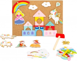 Uronite u čarobni svijet kreativne zabave s Igrom za zakucavanje Jednorog. Ova igra omogućuje vašoj djeci stvaranje raznih scenica i priča uz pomoć priloženog čekića i raznobojnih drvenih oblika. Set sadrži i predloške koji mogu nadahnuti djecu za stvaranje bajkovitih prizora.