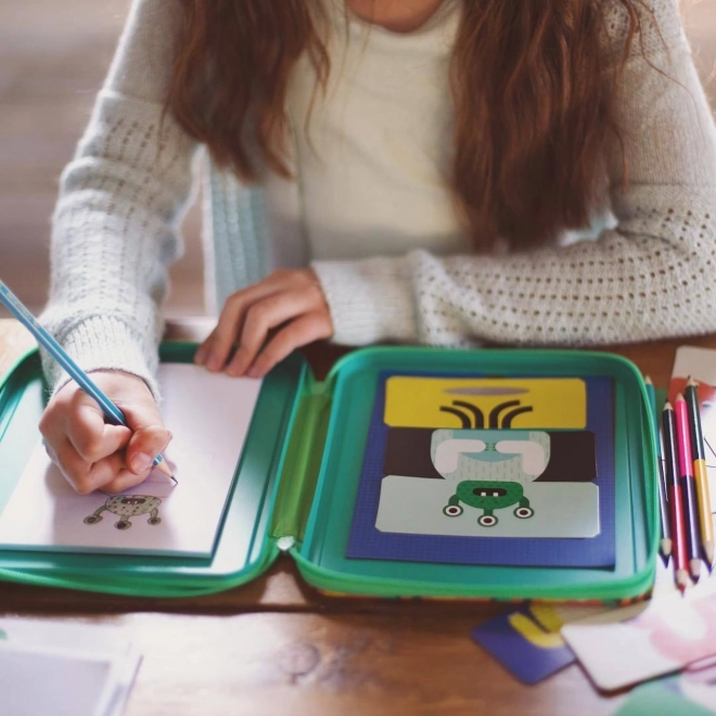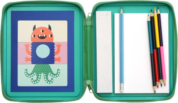 Kreativni set Čudovišta od Petit Collage idealan je za male umjetnike. Sadrži kartice i pastele za stvaranje originalnih čudovišta, zapakirane u kompaktnoj magnetskoj futroli.