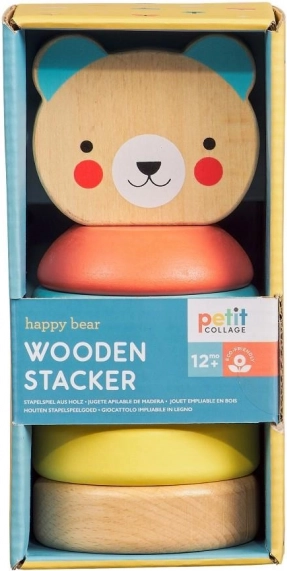 Drvena kula Medvjedić brenda Petit Collage šarena je i sigurna slagalica za djecu od 12 mjeseci. Zahvaljujući prepoznatljivim uzorcima i bojama brenda, djeca intuitivno nižu i slažu pojedine dijelove, čime vježbaju finu motoriku i koordinaciju oko-ruka.