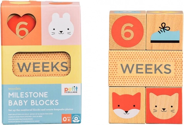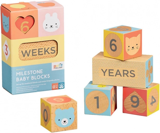 Sačuvajte uspomene na svaku prekretnicu uz kocke za prekretnice Petit Collage. Zahvaljujući različitim otiscima na svakoj strani, lako složite datum, dob ili poruku i tako stvorite predivne fotografije spremne za dijeljenje. Prirodna izrada od FSC bukovine nježna je prema prirodi i sigurna za djecu od rođenja.
