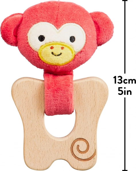 Grickalica s glavom veseloga majmunčića donosi bebi utjehu i zabavu. Tekstilni dio od organskog pamuka ugodan je na dodir, a drveni prsten od FSC certificiranog bukovog drva je gladak i izdržljiv. Ergonomski oblik potiče razvoj fine motorike i sigurnog hvata.