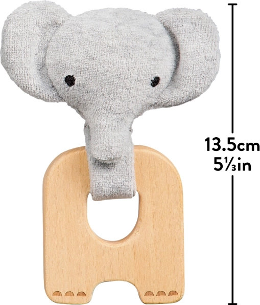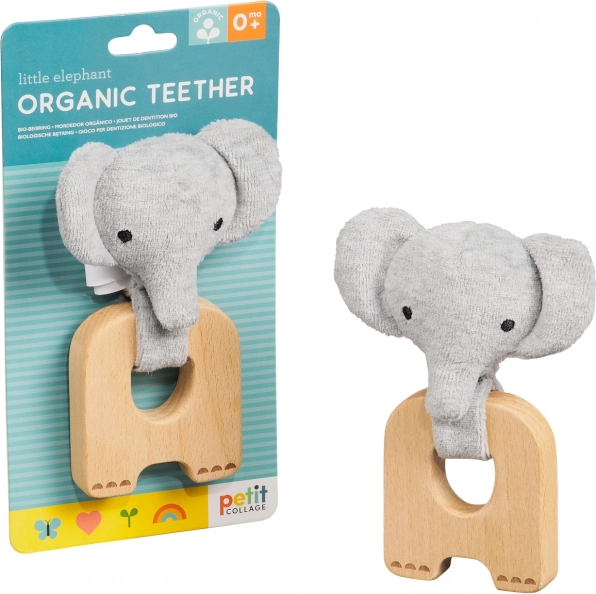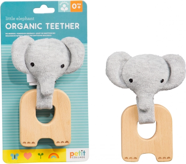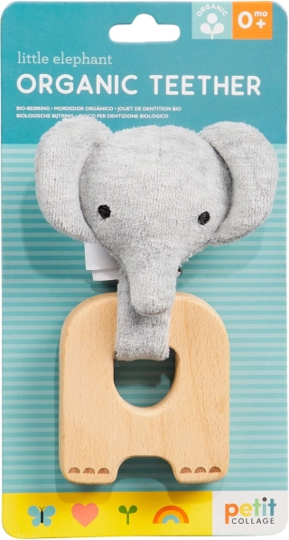 Petit Collage grickalica slon nudi djeci siguran i ekološki način kako se zabaviti i umiriti. Kombinira organski pamuk i FSC certificirano drvo kako bi se osigurala sigurnost i udobnost.