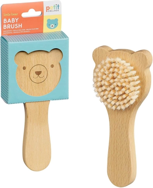 Uredite prve vlasi vašeg djeteta prekrasnom drvenom četkom u obliku medvjeda. Izrađena od FSC certificiranog drva i super mekanih najlonskih čekinja, nježna je za dječje vlasište.