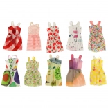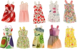 Set sadrži 10 suknjica za lutke s različitim uzorcima poput pruga, cvjetnih i apstraktnih motiva.