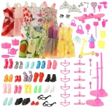 Ovaj megaset sadrži ukupno 85 elemenata, uključujući 10 šarenih suknjica i mnoge druge atraktivne dodatke poput cipela ili kruna. Također, tu su i mali stalci i vješalice za jednostavnu organizaciju garderobe lutaka.