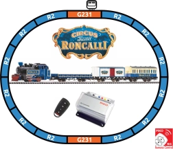 Ovaj kompletni željeznički set sadrži sve za trenutnu vožnju: parnu lokomotivu, putnički vagon, zatvoreni i otvoreni teretni vagon, oval tračnica s podlogom te napajanje s bežičnim analognim upravljačem. Vlak u atraktivnom dizajnu RONCALLI oduševit će realističnim izgledom i pouzdanim radom.