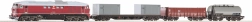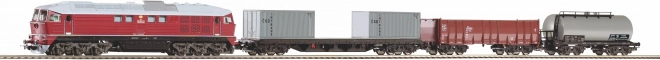 Ovaj početni set Piko nudi sve što trebate za trenutačnu vožnju: snažnu dizel-električnu lokomotivu ČSD BR 130 „Ludmilla“, trojicu teretnih vagona (kontejnerske platforme i cisterna te otvoreni vagon) i prošireni oval tračnica s čvrstom balastnom podlogom. Analogni upravljač omogućuje glatku regulaciju i jednostavno upravljanje odmah po vađenju iz kutije.