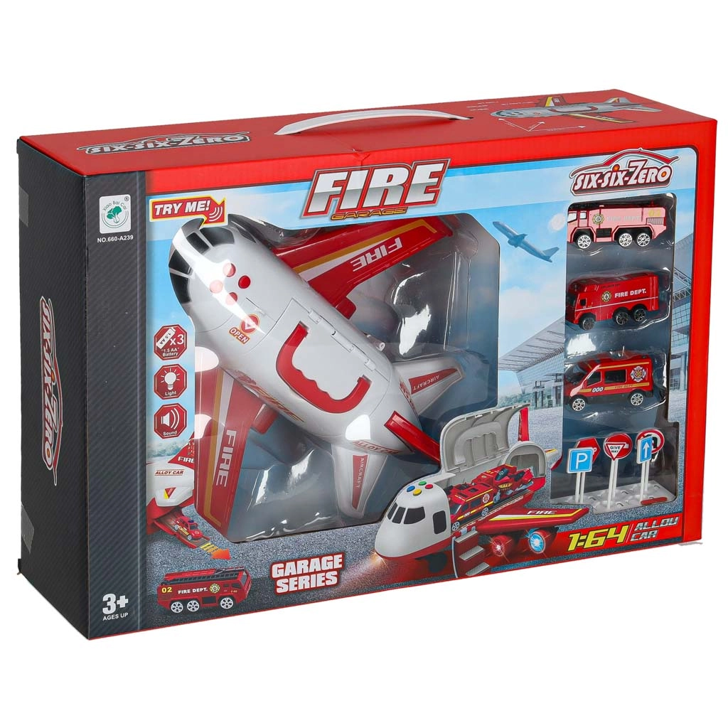 U paketu su 3 vatrogasna vozila i set od 7 prometnih znakova. Sve stane u unutrašnjost aviona, pa je i red i spremnost za putovanje zajamčena.