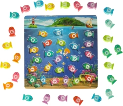 Pridružite se čarobnom podvodnom svijetu i iskusite beskrajnu zabavu s drvenom igrom za pecanje ribica. Ova edukativna igra pomaže djeci naučiti slova, boje i brojenje. Ribice označene pojedinim slovima moraju biti povezane s odgovarajućim otvorima, a možete ih i hvatati pomoću magnetske udice. Cijeli proces pomaže razvijati koncentraciju i strpljenje.