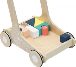 24 kocke različitih oblika nalaze se u guralici, što djeci pruža bezbroj mogućnosti za kreativnu igru. Guralica ima moderan dizajn s plavom ručkom i bijelim ilustracijama.