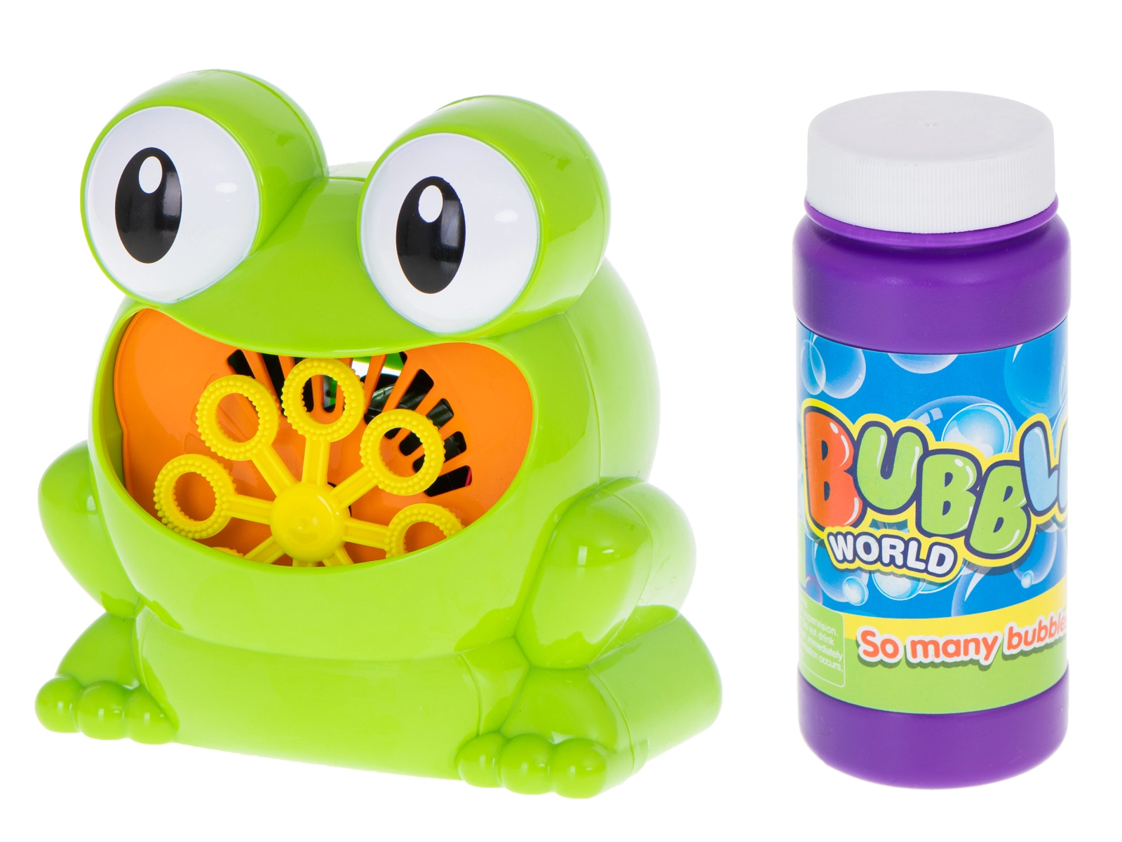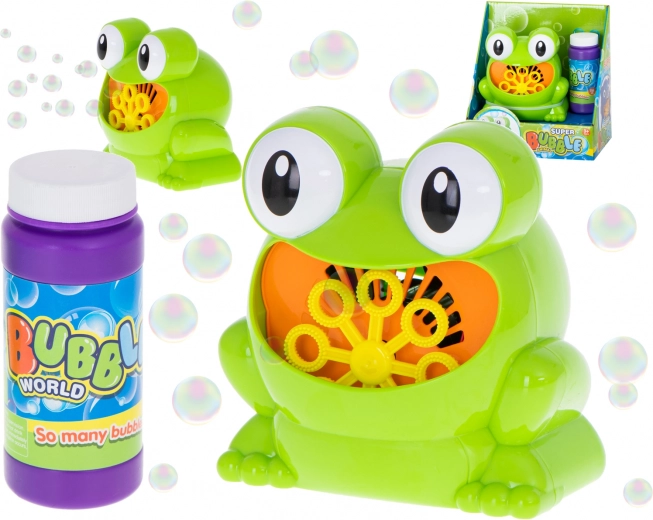 Vesela zelena žabica s velikim očima oživjet će svaku dječju zabavu i privući male čarobnjake s mjehurićima.