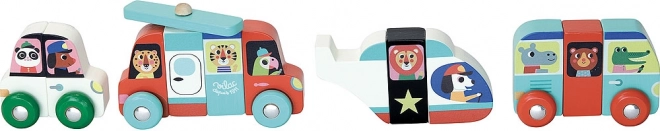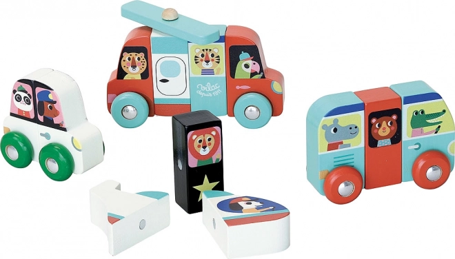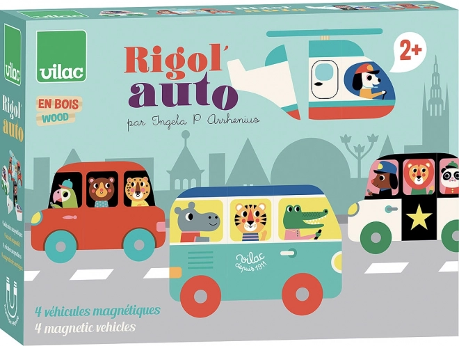 Otkrijte kreativni set Vilac za najmlađe: drvene magnetske puzzle od kojih možete složiti čak četiri različita vozila – autobus, helikopter, osobni i policijski automobil. Dijelove je moguće slobodno kombinirati, pa djeca razvijaju maštu i finu motoriku. Ilustracije švedske umjetnice Ingela P. Arrhenius daju igrački jedinstven retro stil. Prikladno od 2 godine, sadrži 12 dijelova od kvalitetnog drveta s sigurnim magnetima.