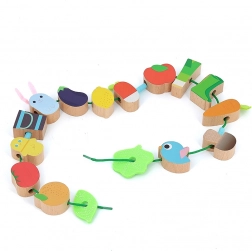 Igračka je izrađena od kvalitetnog drveta i obojana zdravstveno neškodljivim bojama. Tekstilna uzica sa sigurnosnim kopčama omogućuje lako i sigurno nizanje, pa se djeca mogu igrati samostalno ili s roditeljima. Provlačilica potiče razvoj fine motorike, logičkog razmišljanja i vizualne percepcije.