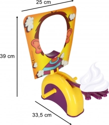 Igra Pie Face je dizajnirana tako da je lako razumljiva i pripremljena za igru u nekoliko minuta. Dovoljno je sastaviti bacački uređaj, postaviti spužvu ili šlag na ruku i spremni ste za igru!