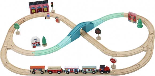 Set je kompatibilan s drugim drvenim željezničkim prugama na tržištu, pa rutu možete u svakom trenutku proširiti. Retro kovčežić omogućuje praktično spremanje i prenošenje, a originalan dizajn Ingele P. Arrhenius cijelom setu daje jedinstven stil.