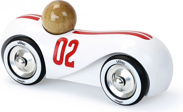 Priuštite djeci i sebi dašak bezvremenske elegancije. Drveni auto VILAC Streamline oduševljava čistim linijama, bijelim lakom i crvenim trkaćim prugama s brojem 02. Metalni kotači s gumenom gaznom površinom omogućuju glatko i tiho kretanje po podu, pa je auto izvrsno rješenje i za igru i za izlaganje.