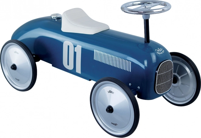 Stilsko vintage guralo koje spaja metalnu konstrukciju s atraktivnom plavom bojom, idealno za vaše najmlađe ljubitelje automobila.