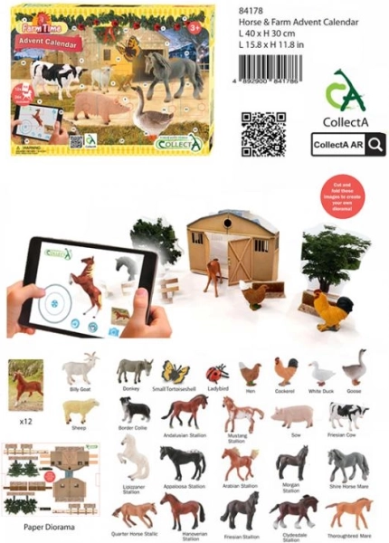 Adventski kalendar CollectA Farma i konji uljepšat će vam svakodnevno iščekivanje Božića. Od 1. do 24. prosinca svakog će se dana otkriti nova životinja s farme: