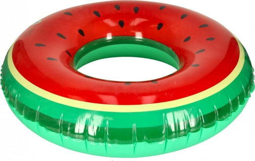 Ovaj plivajući kolut u stilu lubenice oduševljava svojim razigranim dizajnom i izdržljivom izradom. Kvalitetna PVC plastika osigurava dug vijek trajanja, dok veliki promjer od 110 cm pruža stabilnost i udobnost pri odmoru na vodi.