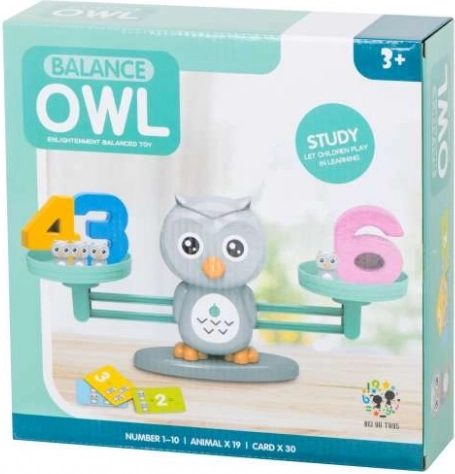 U pakiranju se nalazi vaga sa sovom, 19 malih sovica, 10 plastičnih znamenki i 30 kartica s primjerima. Različiti oblici igre zadržat će pažnju djece te potaknuti kreativnost i samostalno otkrivanje.