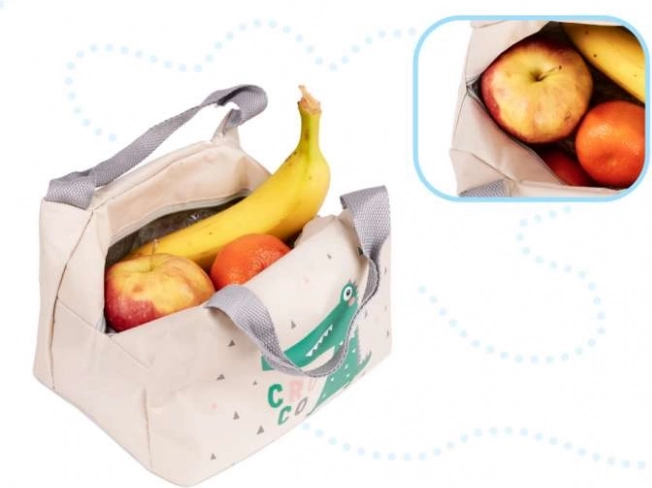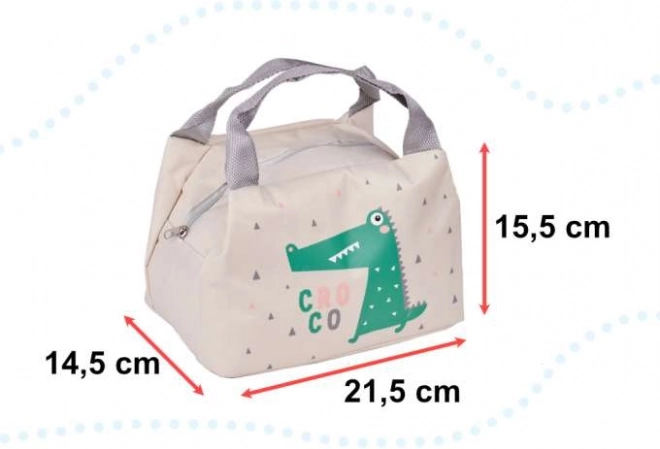 Stilska i praktična torba za užinu s motivom krokodila održava vašu hranu dulje svježom. Ima termoizolacijski unutarnji sloj, zatvaranje patentnim zatvaračem i udobnu ručku za lako nošenje. Idealna za školu, posao, piknik i putovanja.