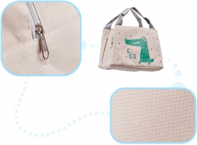 Praktičan dizajn s preslatkim motivom krokodila razveselit će i djecu i odrasle. Torbu ćete lako očistiti vlažnom krpom ili isprati u mlakoj vodi s blagim deterdžentom.
