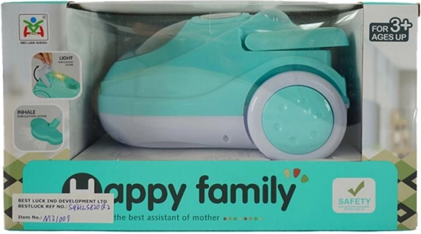 Usisavač u modernoj boji, koji svijetli i ima simulaciju usisavanja. Veličina 28x17x16 cm.