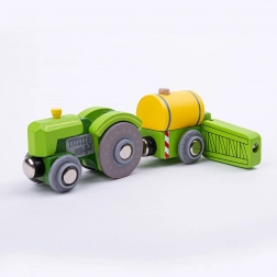 Zeleni traktor s prikolicom i prskalicom odličan je dodatak poljoprivrednim setovima i uobičajenim drvenim željezničkim prugama. Zahvaljujući univerzalnom magnetskom spoju, vagoni se lako povezuju i proširuju mogućnosti igre na farmi i na tračnicama.