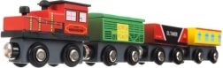 U pakiranju se nalaze 3 lokomotive i 9 vagona u raznim bojama, što jamči raznovrsnost i zabavu na duže vrijeme. Zahvaljujući svojoj konstrukciji, pruga je čvrsta i izdržljiva, idealna za svakodnevnu igru.