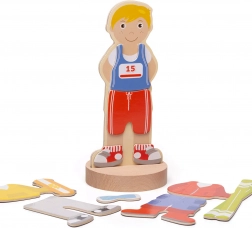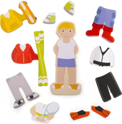 Magnetska odijevajuća slagalica donosi djeci zabavu i učenje u jednom. Zahvaljujući sedam sportskim kombinacijama mali kreativci mogu miksati i usklađivati odjevne dijelove, stvarati jedinstvene outfite i pričati priče o svojim junacima. Čvrsta kutija s magnetskim poklopcem drži sve dijelove na okupu – idealno za putovanja i dječju sobu.