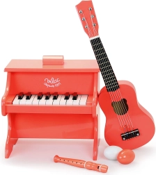 Ova drvena gitara VILAC u živopisnoj narančastoj boji savršena je igračka za male glazbenike. Zahvaljujući najlonskim žicama ugodna je za sviranje i nježna prema dječjim prstima. Kompaktne dimenzije dobro pristaju dječjim rukama i potiču kreativnu igru.