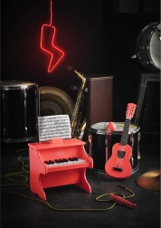 Dio pakiranja su i zamjenska žica te trzalica, pa djeca mogu odmah započeti svoj “koncert” u dječjoj sobi. Proizvod je namijenjen kao igračka – pomaže razvijati ritam, sluh i motoriku, no nije pravi glazbeni instrument.
