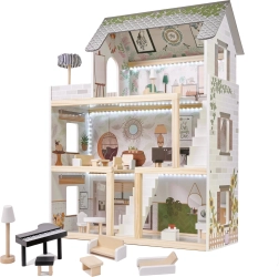 Otkrijte čarobni svijet igre s drvenom kućicom za lutke LULILO Floro u boho stilu, koja će vaše dijete prenijeti u svijet mašte i kreativnosti. Trokatna kućica s LED osvjetljenjem i detaljnim dodacima pruža sate zabave i potiče dječju maštu.
