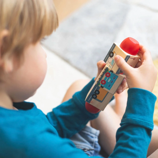 Tri rotirajuća drvena bloka omogućuju slaganje ispravnih slika ili stvaranje novih, zabavnih kombinacija. Idealno za razvoj mašte i koncentracije.