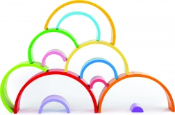 12 šarenih lukova nudi beskrajne kombinacije – od mostova i tunela do apstraktnih konstrukcija. Poticanje mašte i samostalne igre.
