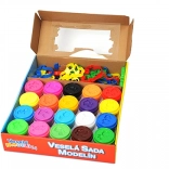Otkrijte kreativni svijet s ovom velikom setom plastelina MODELO – idealno za djecu koja vole stvarati, gnječiti i modelirati. U pakiranju ćete pronaći 20 posudica raznobojnog plastelina i bogatu dodatnu opremu (dlijeta, kalupe, izvlakače) koji potiču finu motoriku, kreativnost i maštu.