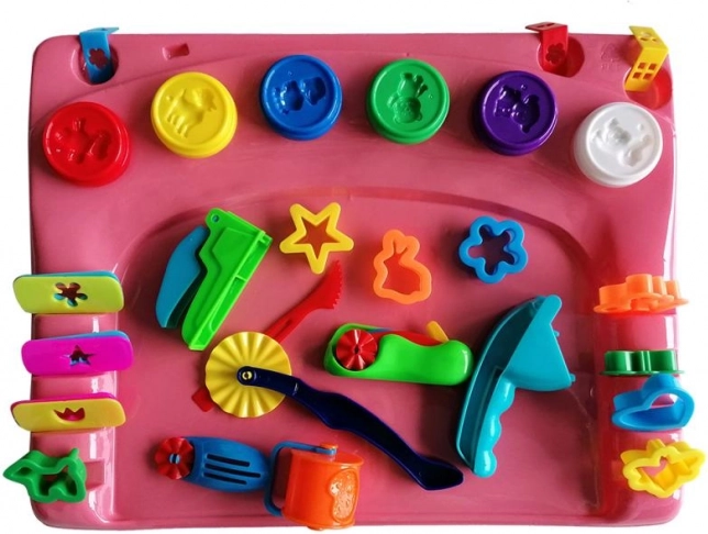 Sastavni dio je praktična podloga za modeliranje koja štiti radnu površinu i pruža stabilno okruženje za stvaranje. Šest čašica plastelina u omiljenim bojama (crvena, ljubičasta, plava, žuta, bijela, zelena) osigurava beskrajne kombinacije i inspiraciju.