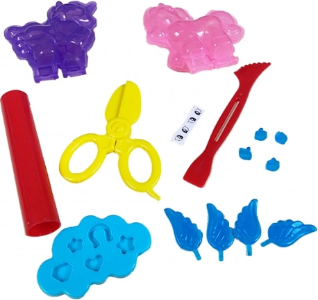 Razni kalupi i alati, uključujući škare i dekorativni kalup, omogućuju izradu detalja i ukrasa. Djeca će tako uživati u obilju zabave pri svakom stvaranju.