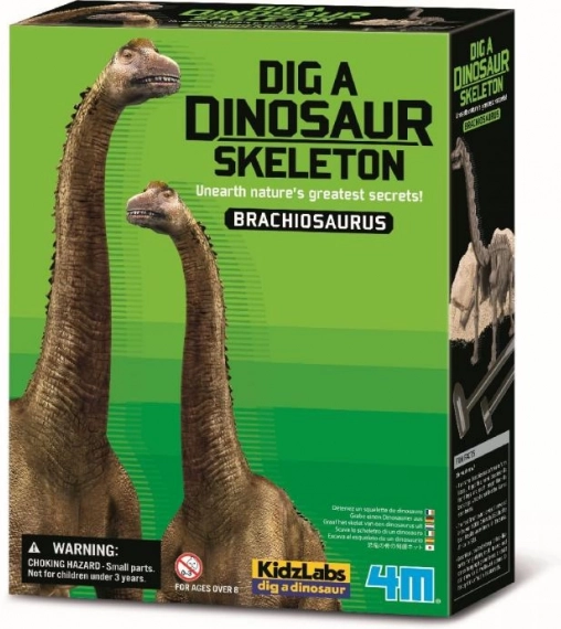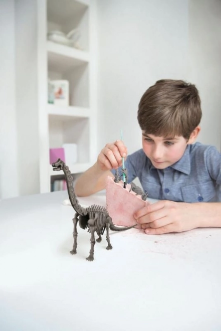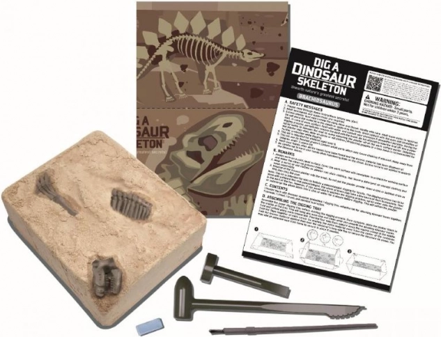 Set za iskopavanje i sastavljanje kostura dinosaura zalivenog u gips. Sadrži potrebne alate.