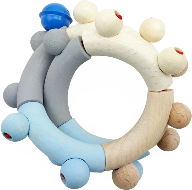 Visokokvalitetna drvena zvečkica, idealna za poticanje mašte i razvoj fine motorike djeteta. Zvečkica oduševljava svojim pastelnim bojama i etički je izrađena od drva iz ekološki upravljanih šuma.