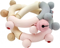 Glatki drveni elementi i perlice motiviraju bebu na hvatanje, stiskanje i kotrljanje, čime razvijaju koordinaciju oko–ruka i osjet dodira.