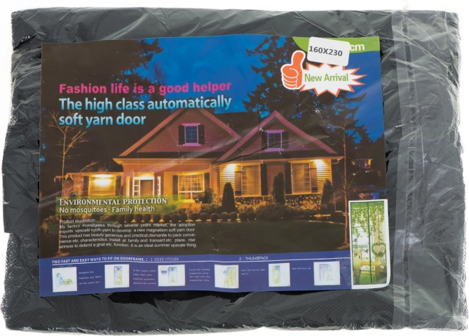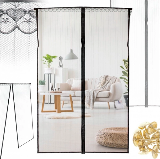Montaža je brza – mrežu jednostavno pričvrstite na okvir vrata pomoću priloženih pribadača. Tijekom sezone radi bez brige svaki dan, a izvan sezone lako je skinete i operete ručno na 30 °C. Minimalističko crno izvedenje uklapa se u većinu interijera i eksterijera.