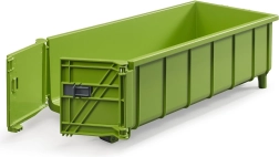 Kontejner se može jednostavno podići u položaj za istovar, stražnja stranica se otvori i teret sigurno sklizne van – baš kao na pravoj prikolici.