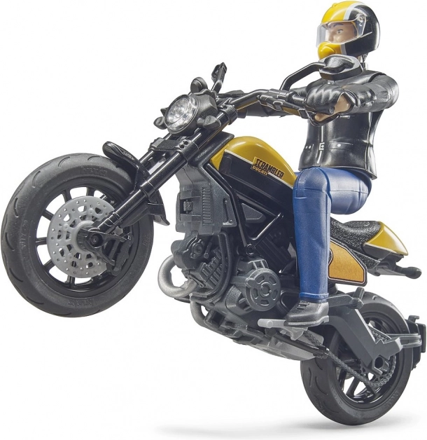 Ovaj detaljno izrađen model motocikla Scrambler DUCATI Cafe Racer od BRUDER-a idealan je za male motocikliste i kolekcionare. Realističnu izradu, od vidljivih elemenata motora do oblika sjedala, upotpunjuje potpuno pokretna figura vozača koja omogućuje prirodne vozačke i akcijske položaje.