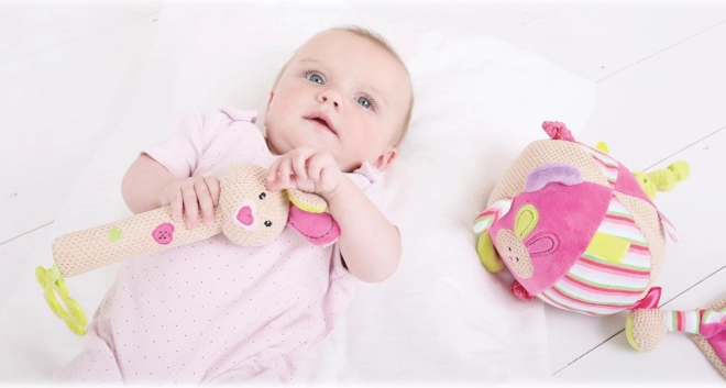 Ova šarena tekstilna lopta unosi radost i istraživanje u dječji svijet. Stvorena je s ciljem poticanja osjetilnog i motoričkog razvoja beba. Djecu će oduševiti razne teksture i boje koje lopta nudi.